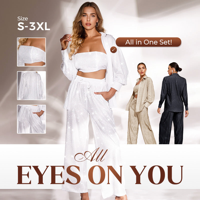 ✨Paljettblazer och vida byxor för kvinnor (3-delat set)