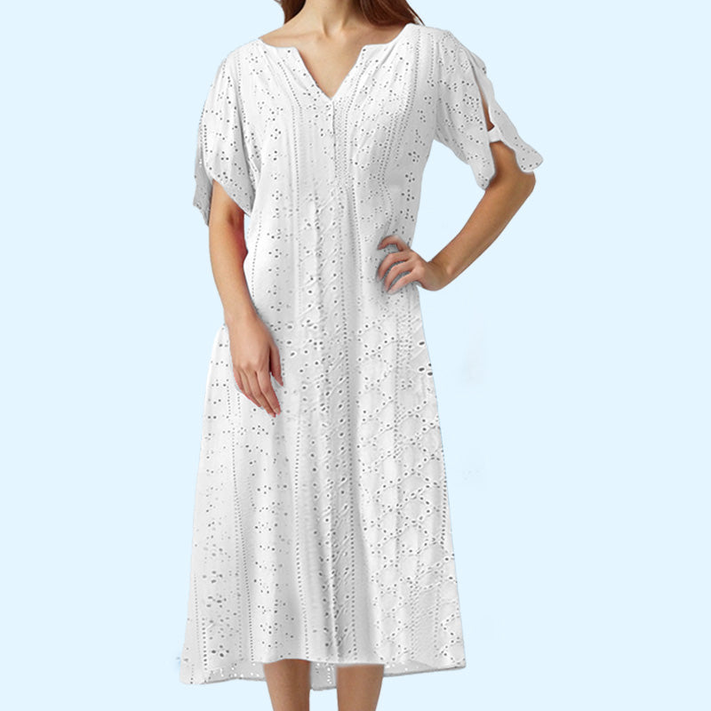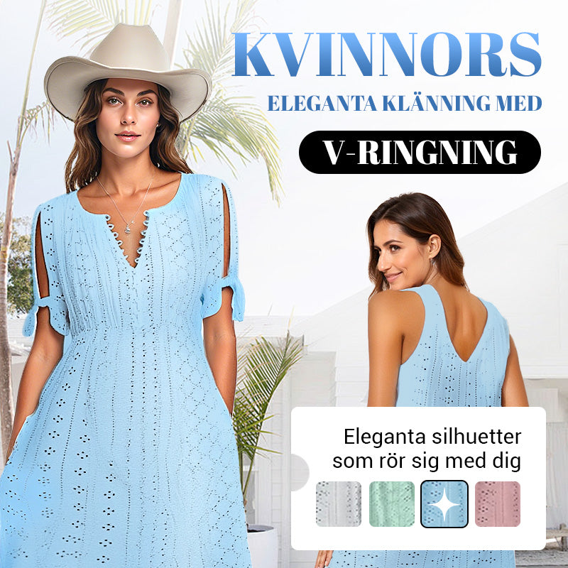 ⏰Begränsad tid 50% rabatt🌸 Elegant klänning med V-ringning och broderie anglaise för dam